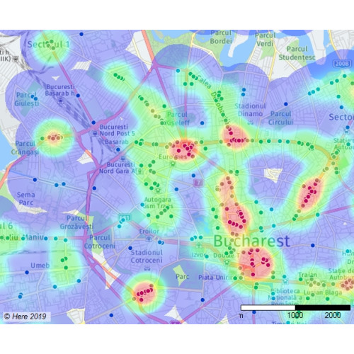 • Vizualizati pe harti HERE, OpenStreetMap, straturi si harti proprii, datele dvs. de client, utilizand informatiile de adresa, coordonate (X, Y) sau cod postal.
